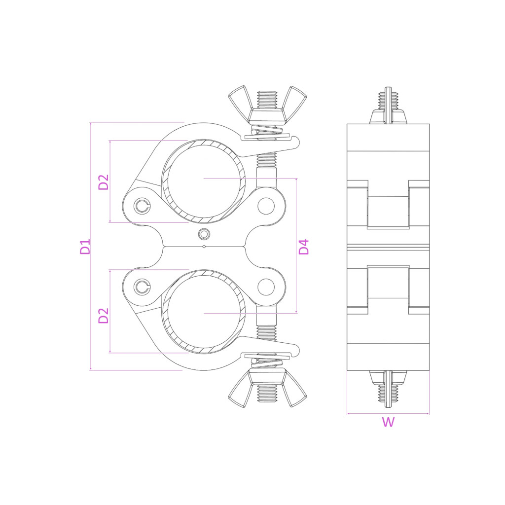 Nagy teherbírású univerzális alumínium karcsú forgatható csatlakozó cső- és rácsos rögzítéshez. A forgócsatlakozó szilárd rögzítést biztosít a szomszédos rudak között, miközben 360 fokos elmozdulást tesz lehetővé. Nagy szilárdságú alumínium konstrukció.