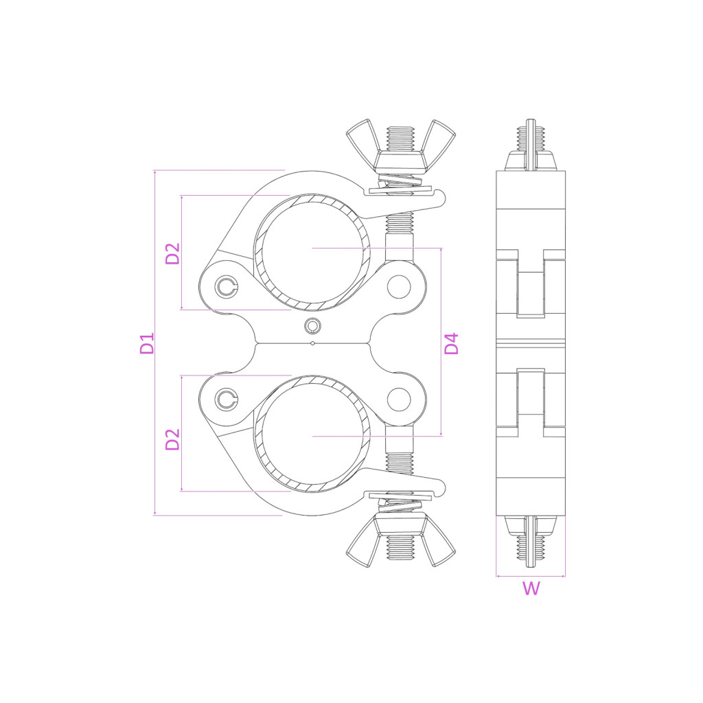 Nagy teherbírású univerzális alumínium karcsú forgatható csatlakozó cső- és rácsos rögzítéshez. A forgócsatlakozó szilárd rögzítést biztosít a szomszédos rudak között, miközben 360 fokos elmozdulást tesz lehetővé. Nagy szilárdságú alumínium konstrukció.