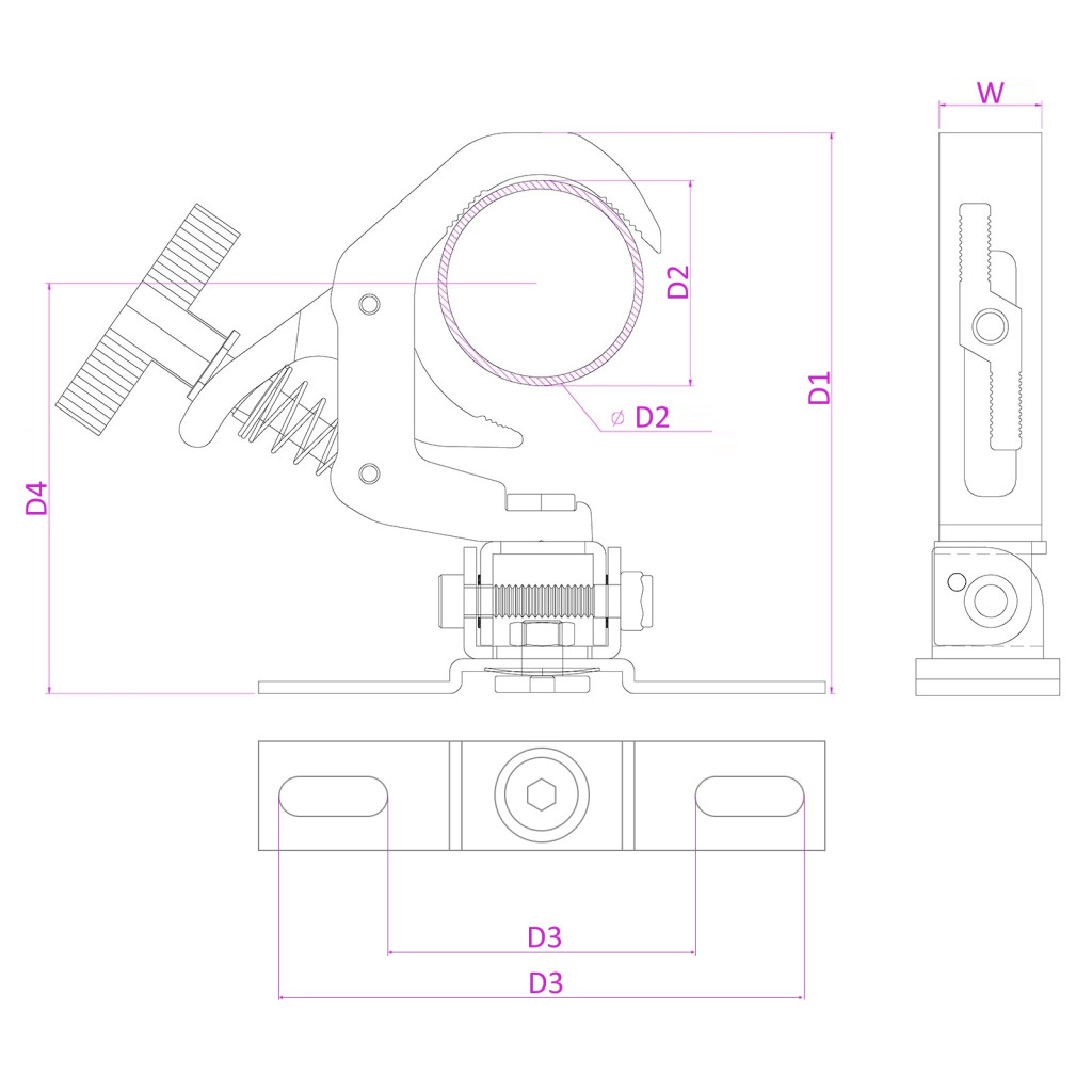 Az univerzális mozgófej-bilincs gyorskioldó rendszerrel lehetővé teszi a mozgófejek szerelt bilincsekkel történő szállítását repülési tokokban az egyedülálló billenő rendszernek köszönhetően. Ezek a bilincsek a legtöbb mozgófejes modellhez alkalmasak, öntött alumíniumból készülnek, és könnyen felszerelhetők különféle cső- és rácsos rendszerekre. Biztonságos és ergonomikus fogantyúval van felszerelve.