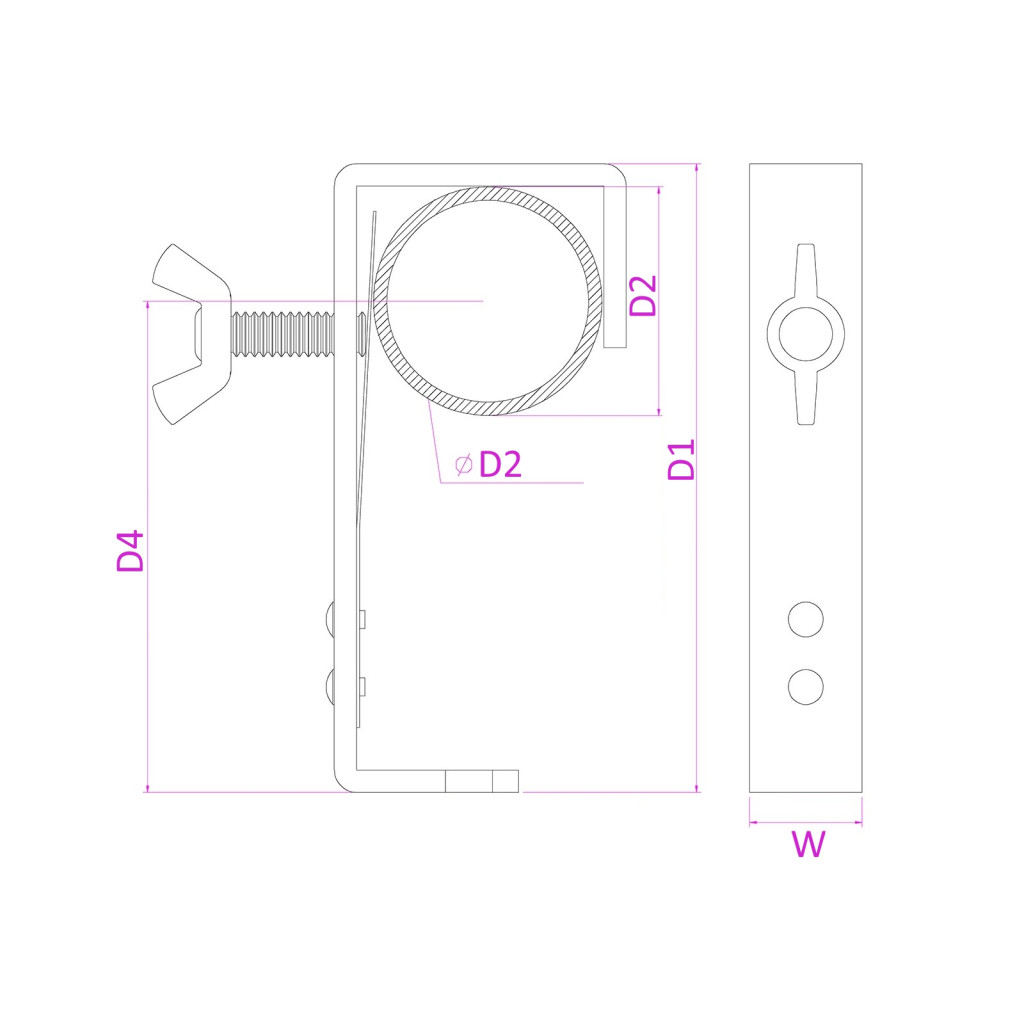 Erős fém csavaros bilincs gyorszárral, tartósra épített, kifejezetten a fényeffektusok biztonságos rögzítésére tervezve. Legfeljebb 50 mm átmérőjű oszlopokhoz illeszkedik.