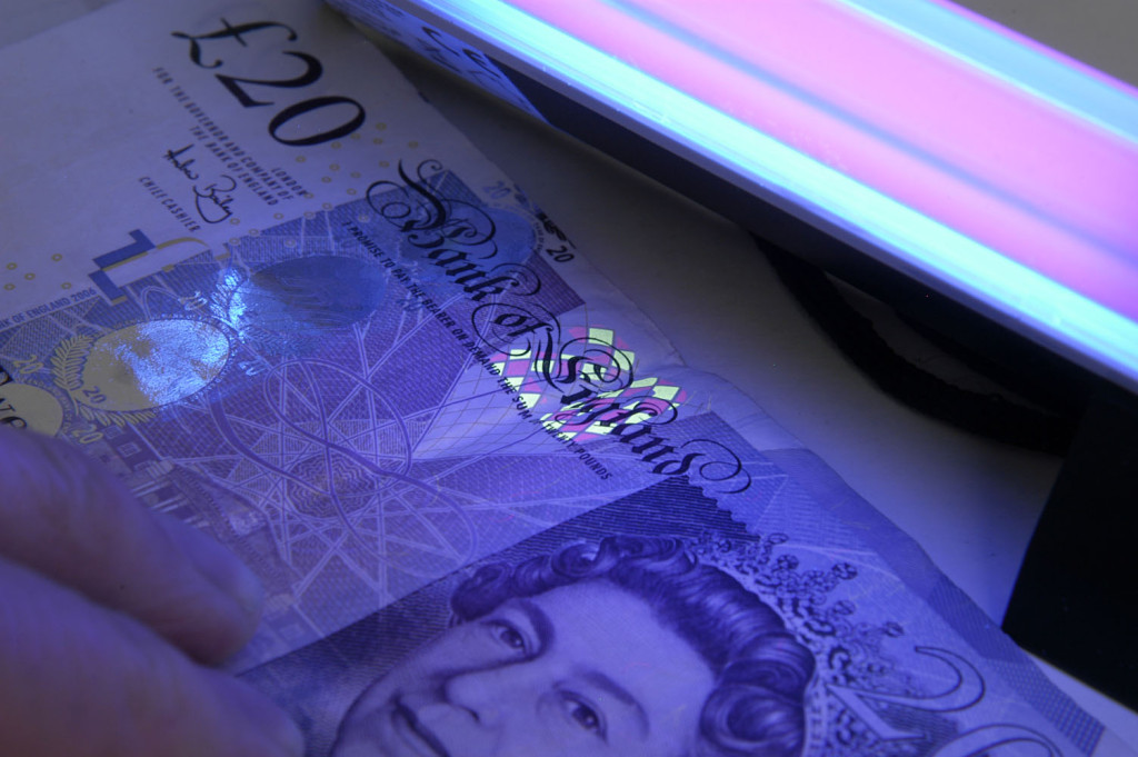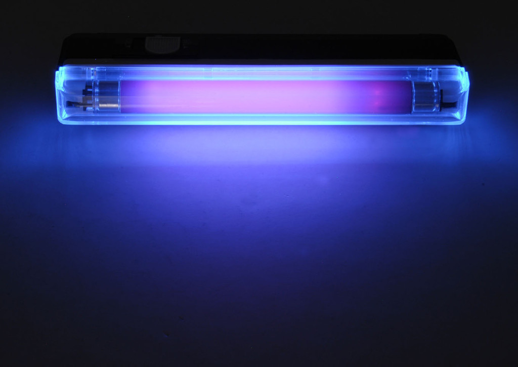 Kompakt zseblámpa 6 hüvelykes UV fénycsöves lámpával. Hasznos a bélyegzők és biztonsági dokumentumok ellenőrzéséhez.