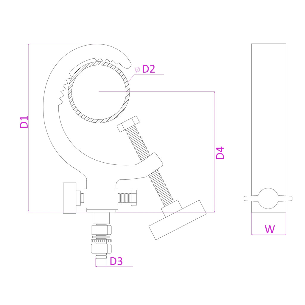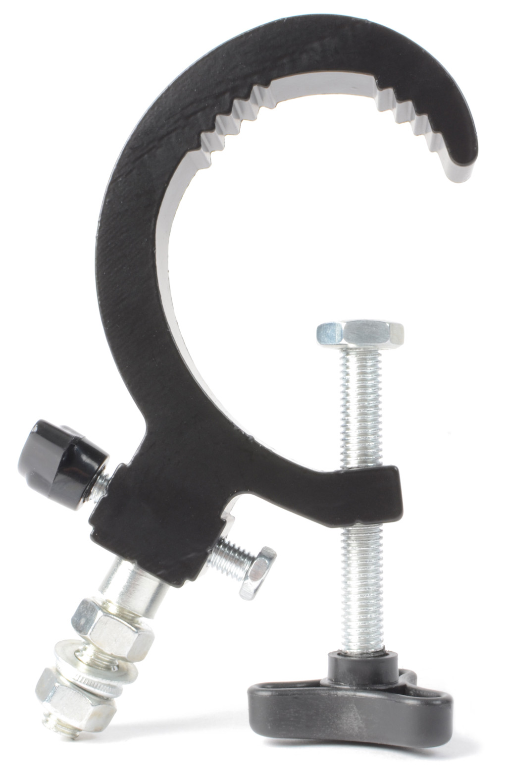 Speciális erős csavaros bilincs a fényeffektusokhoz. "G" alakú univerzális alkalmazásokhoz. A "G" bilincs maximum 50 kg súlyt tud elbírni, így szinte minden könnyű egységhez tökéletes. 30-60 mm átmérőjű oszlopokra illeszkedik.