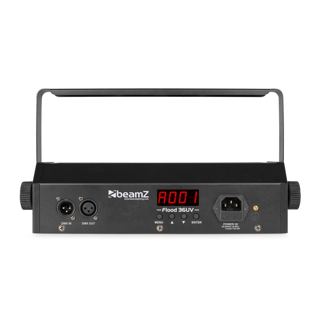 A Flood36UV egy erős és nagy teljesítményű LED Flood nagy teljesítményű ultraibolya LED-ekkel. Ez a 36 ultraibolya 3 W-os LED „világít a sötétben” tárgyakat és embereket. A teljes DMX integráció, a Sound-to-Light funkció integrált mikrofonon keresztül, valamint a Master/Slave mód minden igényt kielégít! Alkalmas mindenféle előadásra és rendezvényre.