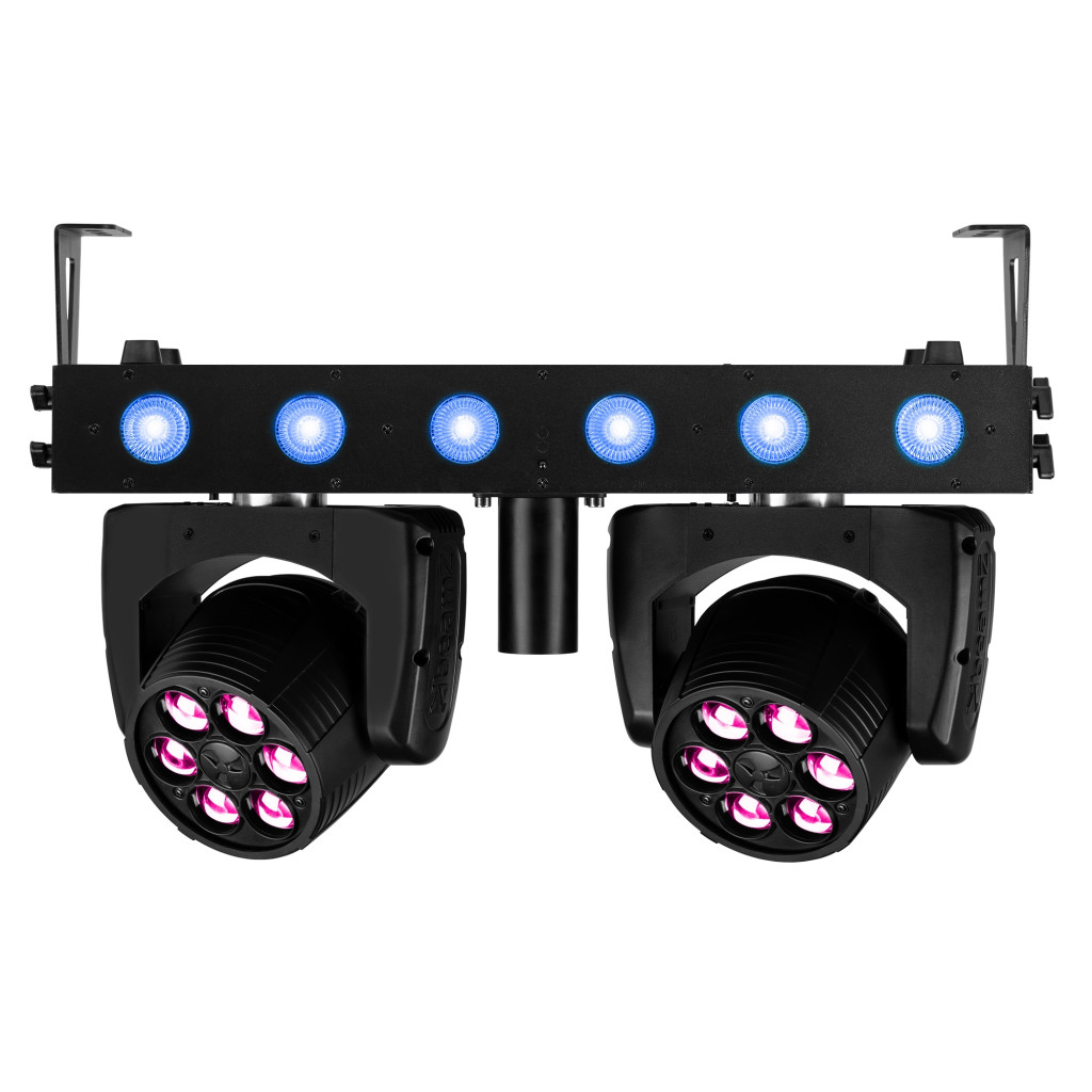 A Twin LED Moving Head Bar 2 különálló mozgófejből áll, amelyek egy erős fém T-rúdra vannak felszerelve, amely 6 nagy teljesítményű RGBW LED-del is fel van szerelve. A két mozgófej 6x 12 RGBW LED-del van felszerelve, és egymástól függetlenül vezérelhető DMX-en keresztül, így páratlan pontossággal testreszabhatja a fényeffektusokat. A DMX vezérlésen kívül ez a lámpatest egy sor automatizált funkciót is kínál. Használja a különféle automatikus programokat, hogy könnyedén átalakítsa helyszínét lenyűgöző fénymintákkal. Azok számára, akik a kihangosított élményt részesítik előnyben, a lámpatest tartalmaz egy hang-fény módot, amely szinkronizálja a mozgását és a színeit a zene ütemével, és további izgalmat ad minden eseményhez. Kapcsoljon össze több egységet a P-Con és DMX bemenetekkel és kimenetekkel. A Twin LED Moving Head Bar szabványos 35 mm-es állványra szerelhető.