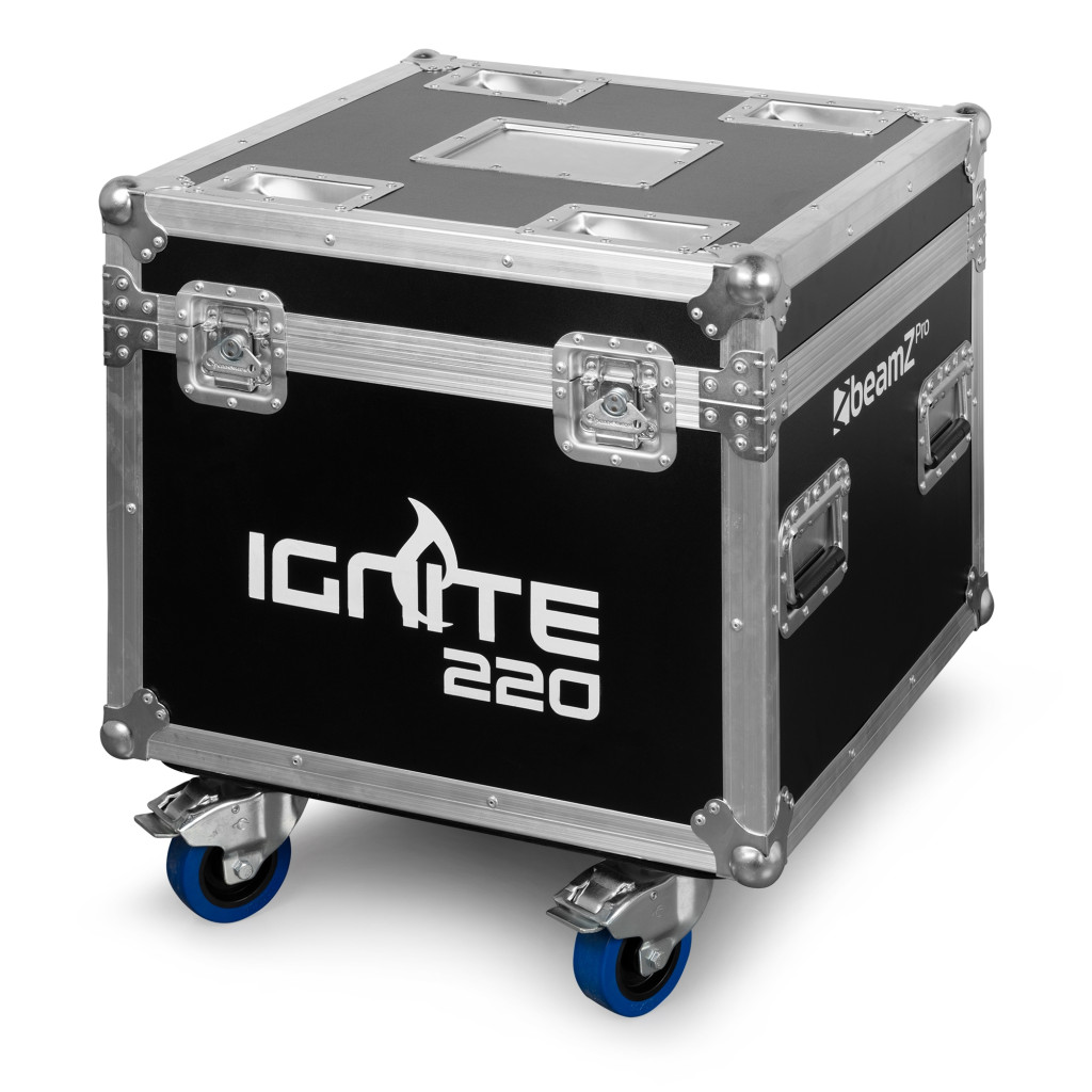 A teljes készlet 2 db IGNITE220 mozgófejből áll, masszív és robusztus repülőtokban. Az IGNITE220 egy pontmozgató fej lineáris motorizált zoommal, amely a legújabb technológiának megfelelően nagy teljesítményű, ultra-fényes 220 Wattos LED-del van felszerelve. Ez a mozgófej 2 gobo kerékkel és egy 3 szögben forgó prizmával is rendelkezik, amelyek lenyűgöző 8 színű légi hatásokat hozhatnak létre. A 12 fokos sugárzási szög ideálissá teszi ezt a rögzítést gobo vetítéshez és éles sugárfigurákhoz. Az IGNITE220 DMX vezérlésre alkalmas 3 különböző csatorna módban, master/slave vagy önálló működés. Számos előre beállított műsort, villogó és dimmer funkciókat, valamint beépített mikrofont tartalmaz a hangaktiváláshoz. Tökéletesen használható számos rendezvényhez és klubtelepítéshez.