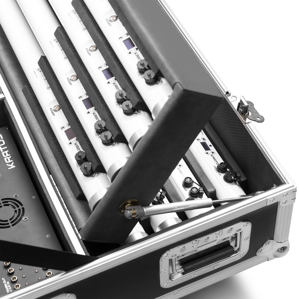 A Kratos Tube Kit nyolc Kratos Tube-val és minden alapvető tartozékkal érkezik, amelyre szüksége van a következő forgatáshoz vagy rendezvényhez, legyen az beltéri vagy kültéri. Ezeket mind egy tartós, védőrepülőtáskában tárolják, amely kerekekkel és fogantyúkkal van felszerelve a könnyű szállítás érdekében.