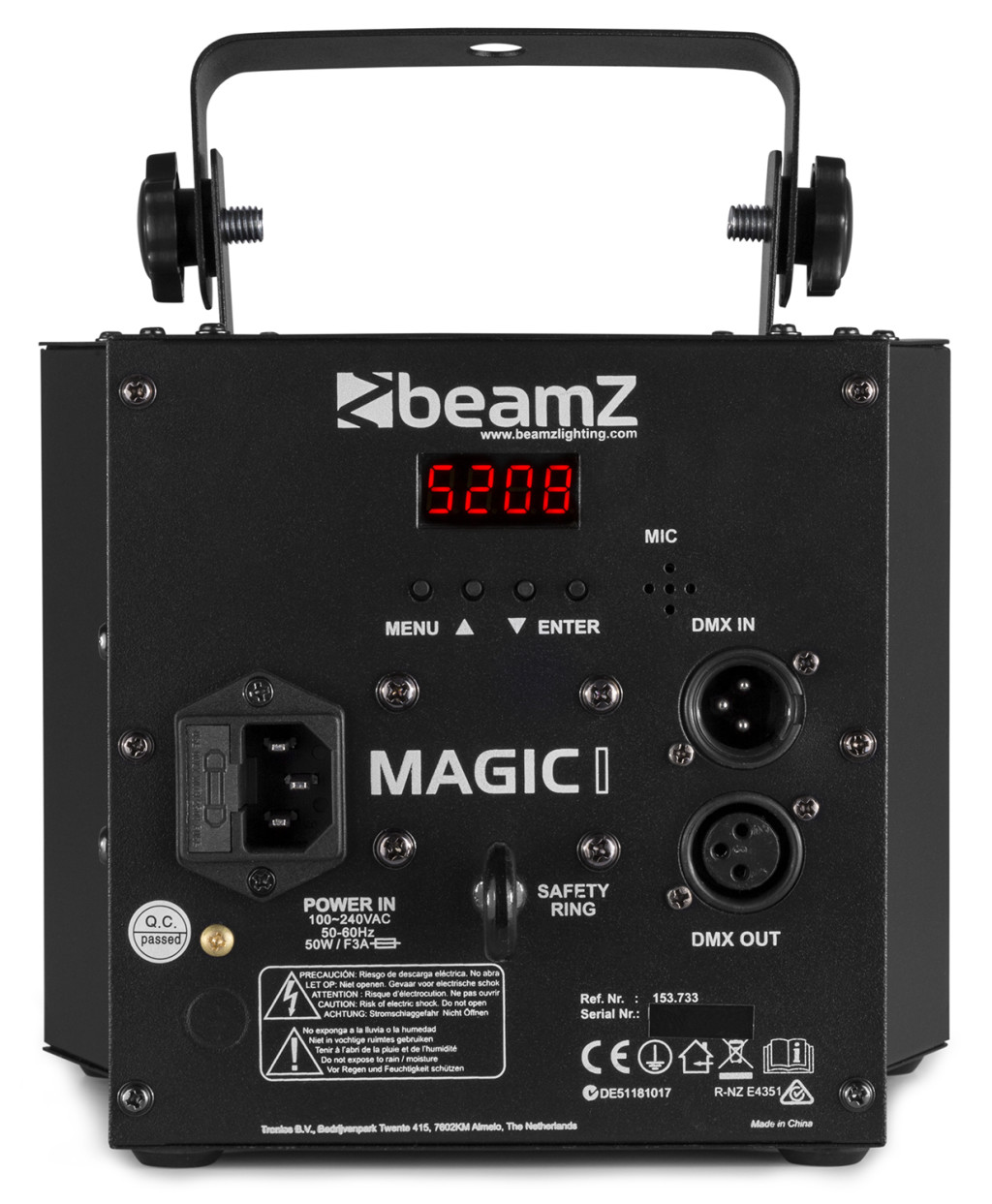 Magic1 Derby 2 effekt erejét egyesíti 1-ben. Az erőteljes villanófény és a színes, éles és éles LED-sugarak kombinációja garantált lendületet ad a bulinak. Az előre programozott műsorok a master/slave móddal kombinálva a Magic1 Derby-t jó effektussá teszik a mobil DJ-k és előadók számára. A haladó felhasználók számára egy 7 csatornás DMX mód áll rendelkezésre, minden LED-et és motort vezérelve, így nagyon jól használható műsorokhoz vagy rendezvényekhez is.