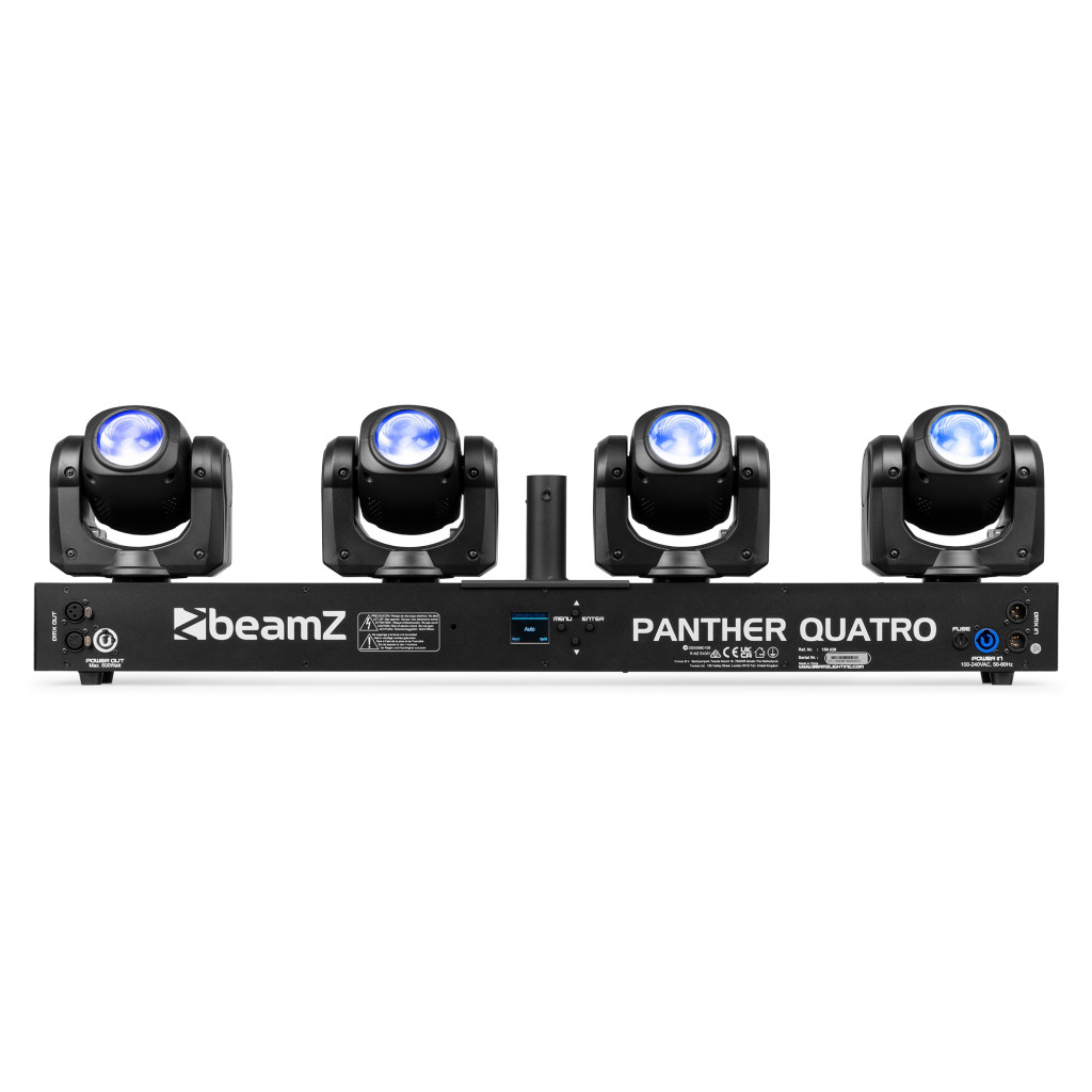 A Panther Quatro Beam Bar egy kompakt bár négy, egymástól függetlenül vezérelhető mozgófejjel, amelyek látványos fényshow-t garantálnak. A rúd oszlopra szerelhető a könnyű állványon való elhelyezés érdekében, és erőteljes 40 W-os RGBW LED-ekkel van felszerelve, amelyek izgalmas színpalettát biztosítanak. A DMX vezérlésű, hangaktiválással vagy önálló módban a Master/Slave funkcióval használható Panther Quatro Beam Bar nagyon sokoldalú és könnyen használható. Tökéletes világítástervezőknek, DJ-knek, zenekaroknak, kluboknak, bároknak és olyan installációknak, ahol korlátozott a hely.