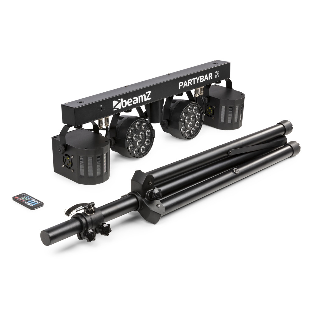 Partybar2 egy komplett DJ világítási megoldás, amely 2 nagy intenzitású RGBW LED-del és 2 Derby lámpával ellátott PAR dobozzal van felszerelve. Ez a Partybar2 vezérelhető DMX, infravörös távirányítóval vagy a vezérlőpultról választható automatikus és hangaktivált programokkal. A gyors és egyszerű beállítás érdekében állványt is mellékelünk. Kifejezetten színpadokhoz, bulikhoz, előadóművészekhez és minden más különleges eseményhez készült.
