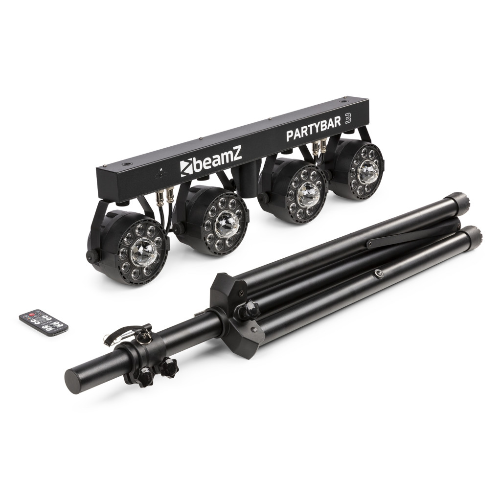 Partybar3 egy szenzációs fényshow, 4 PAR kannával (RGB LED) és beépített Magic Balllal. Ez a Partybar3 plug and play, és vezérelhető DMX-el, infravörös távirányítóval vagy a vezérlőpultról választható automatikus és hangaktivált programokkal. A gyors és egyszerű beállítás érdekében állványt is mellékelünk. Kifejezetten színpadokhoz, bulikhoz, előadóművészekhez és minden más különleges eseményhez készült.