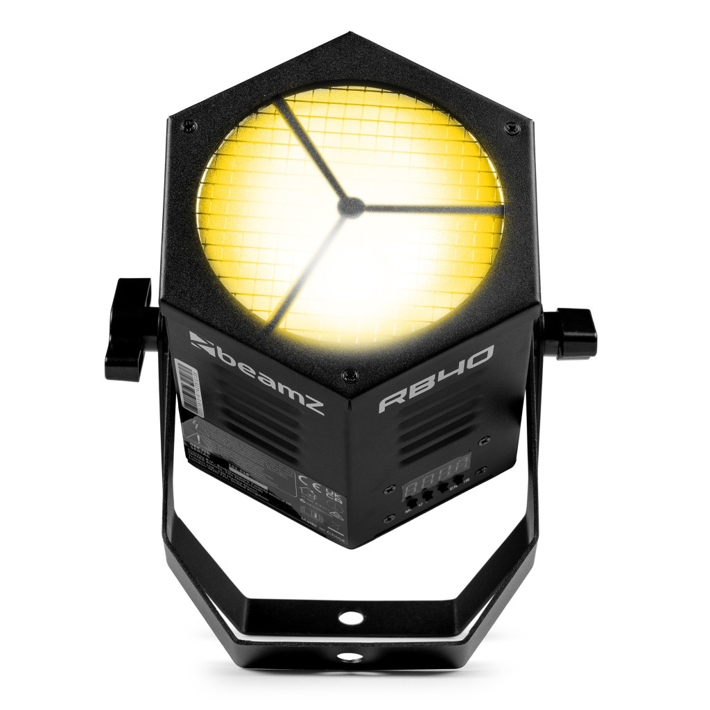 Kombinálja a retro trendet a modern COB LED technológiával! Az RB40 egy erős fém PAR, nagy teljesítményű 40 W-os COB (chip-on-board) LED-del, és 75°-os sugárzási szöget hoz létre. A lámpatest számos statikus RGBW színt és színkeverést kínál. Beépített automatizált és hangaktivált programokat, villogást és elektronikus fényerő-szabályozást tartalmaz, hogy menet közben is használható legyen, vagy létrehozza saját megjelenését a DMX mód használatával. Több egység összekapcsolásának lehetősége. Ez a COB retro effektus élénk megvilágítást hoz létre számos látványos vizuális effektussal.
