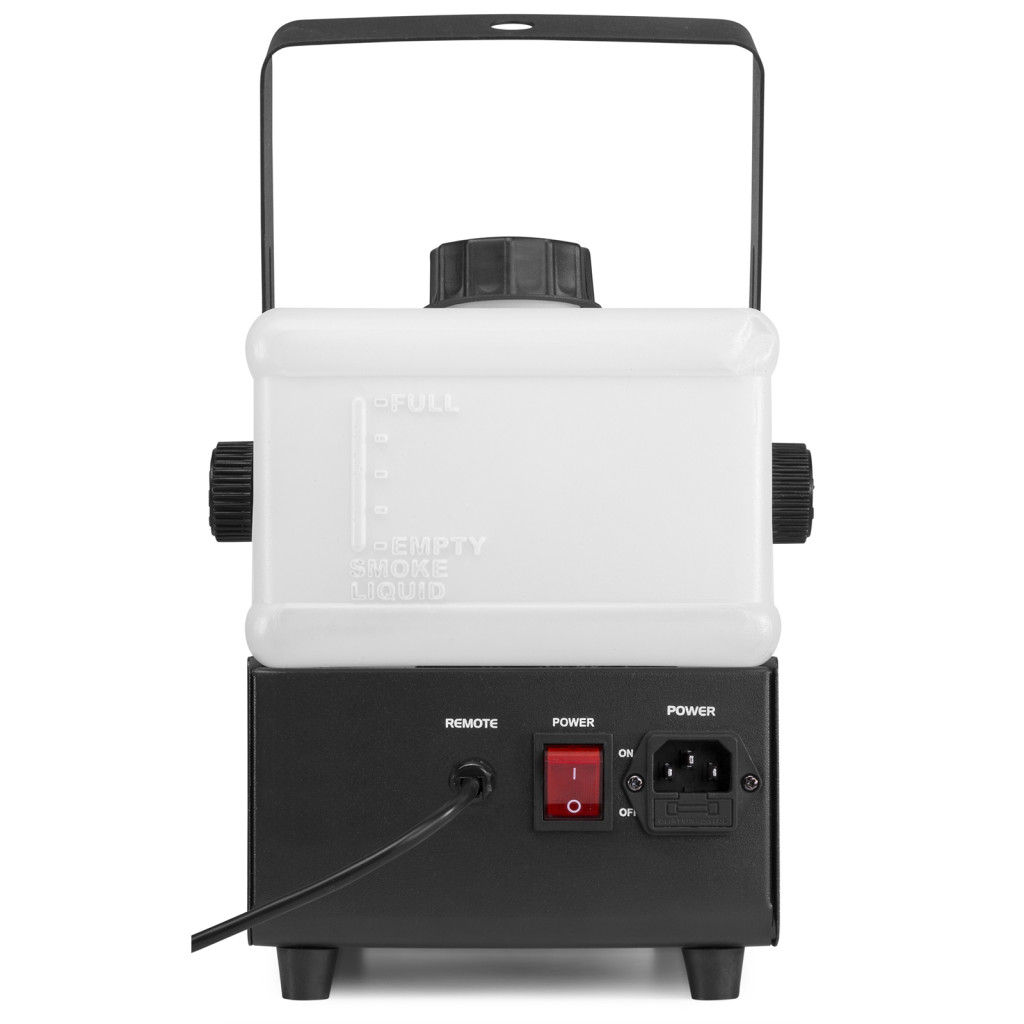 Ez a stílusos füstgép nagy teljesítményű, termosztatikusan szabályozott fűtőelemmel és energiatakarékos hőmérséklet-szabályozással rendelkezik. Ennek a füstgépnek masszív fémháza és 2 literes tartálya van! Használható a mellékelt vezetékes távirányítóval (3 m kábel), valamint a vezeték nélküli távirányítóval. Alkalmas kis és közepes méretű helyszínekre. A LED-es megvilágítású tartály megkönnyíti a ködfolyadék szintjének ellenőrzését.