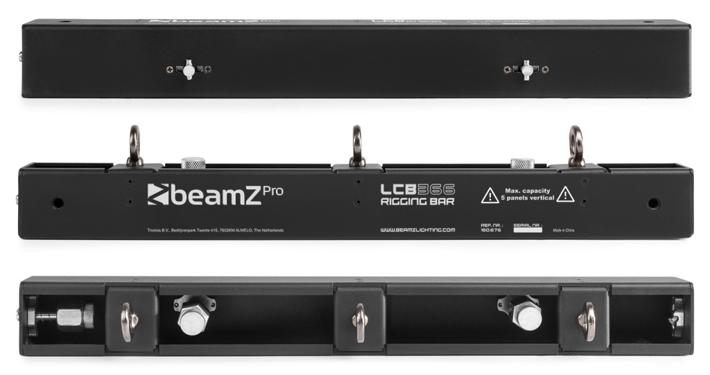 Erős fém kötélzetrúd 3x M10 repülési ponttal, és vízszintesen rögzíthető más kötélzetrudakkal a gyorszárakkal a gyors és egyszerű telepítés érdekében.