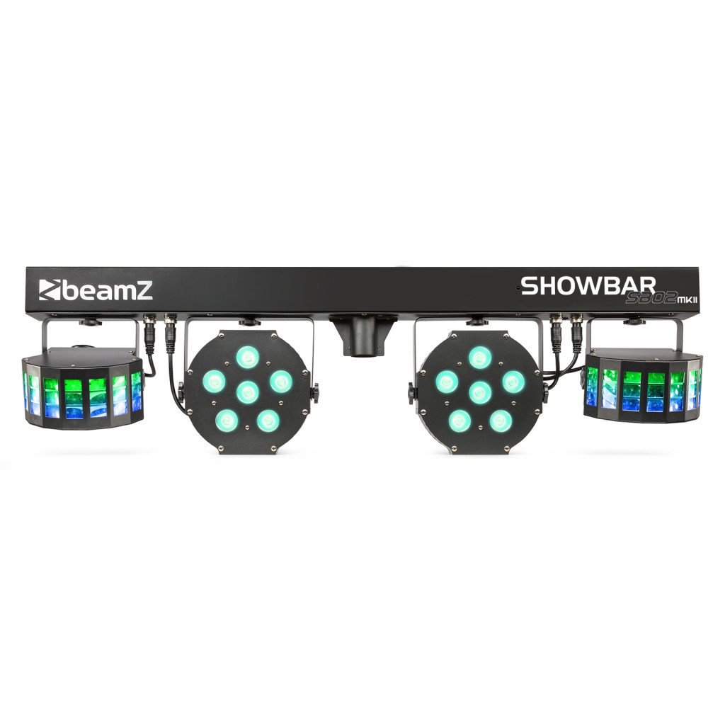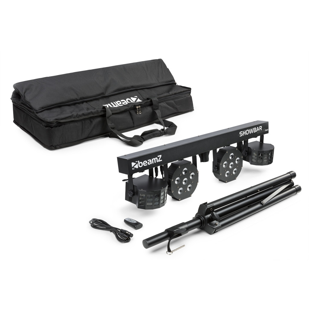 Az SB02 ShowBar készlet egy újratölthető lítium elemmel működő Show Bar, amely 4 effektet tartalmaz egy DMX T-barra szerelve. 2 LED Derby effekt lámpával és egy pár nagy teljesítményű LED elemmel van felszerelve, amelyek lenyűgöző fényshow-t garantálnak. A T-bar vezérelhető automatikus módban, hanggal aktivált módban vagy 6/30 csatornás DMX módban, és IR érzékelővel is fel van szerelve a távolság távirányítóval történő vezérléséhez. Az SB02 ShowBar a mellékelt állványra szerelhető, az akkumulátor kapacitása pedig könnyen leolvasható az akkumulátorjelzőn.