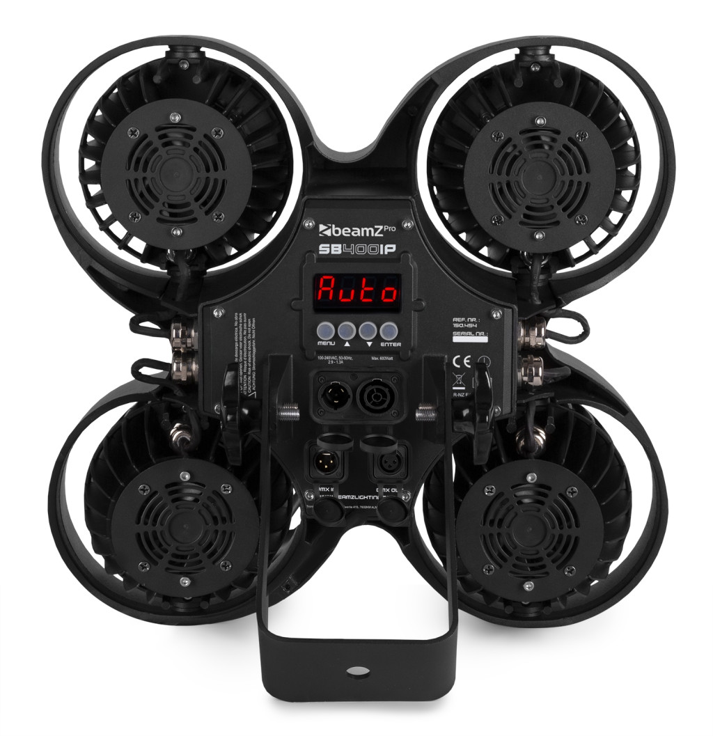 Az IP65 besorolású SB400IP Stage Blinder egy erős, masszív alumínium kialakítású LED-es világítótest, 4x 100 W-os chip-on-Board (COB) LED-ekkel, amelyek házában két effektust kombinálnak. Ez a lámpatest a színpadi vakító mellett stroboszkópként is használható. Az SB400IP megfelel a hagyományos Audience Blinder vakító fénykibocsátásának, és vezérelhető önálló módban, hangaktiválási módban vagy közvetlenül DMX-en keresztül 4 vagy 8 csatornás módban. A LED-ek várható élettartama akár 60 000 óra. A LED-ek színe meleg fehér.
