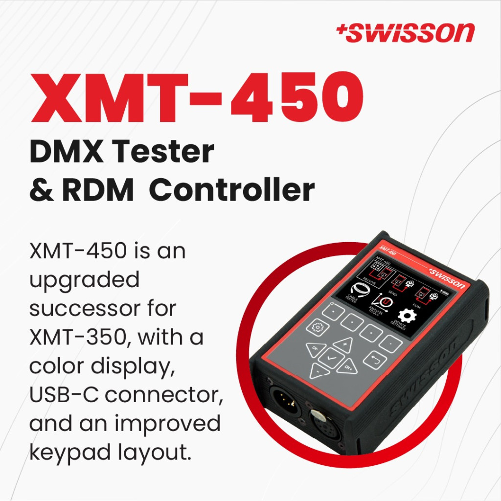 2025 júliusának elején a svájci Swisson hivatalosan is bemutatta legújabb DMX teszterét, az XMT-450-et. Az új modell nem csupán az XMT-350 méltó utódja, hanem egy korszerű, felhasználóbarát, megbízható műszer, amely a fénytechnikai szakemberek igényei alapján született. Bár a cég eredetileg nem tervezte ennek a modellnek a megjelenését, a piaci igények – különösen a kevésbé komplex tesztelési lehetőségeket kereső felhasználók visszajelzései – végül mégis életre hívták az eszközt.