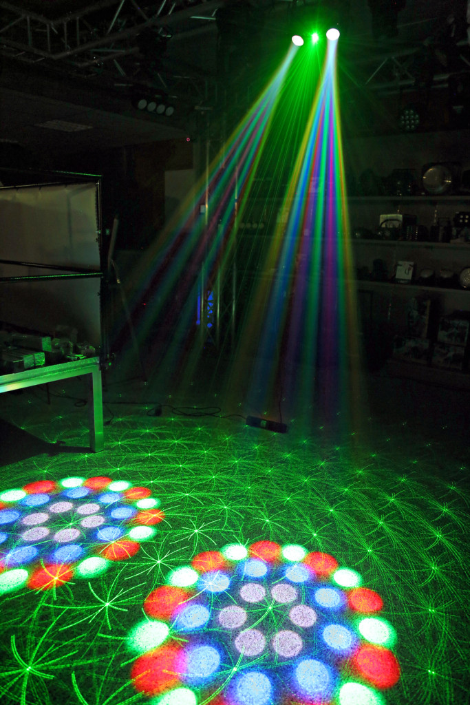 3 az 1-ben effektus holdvirággal, lézerrel és stroboszkóppal