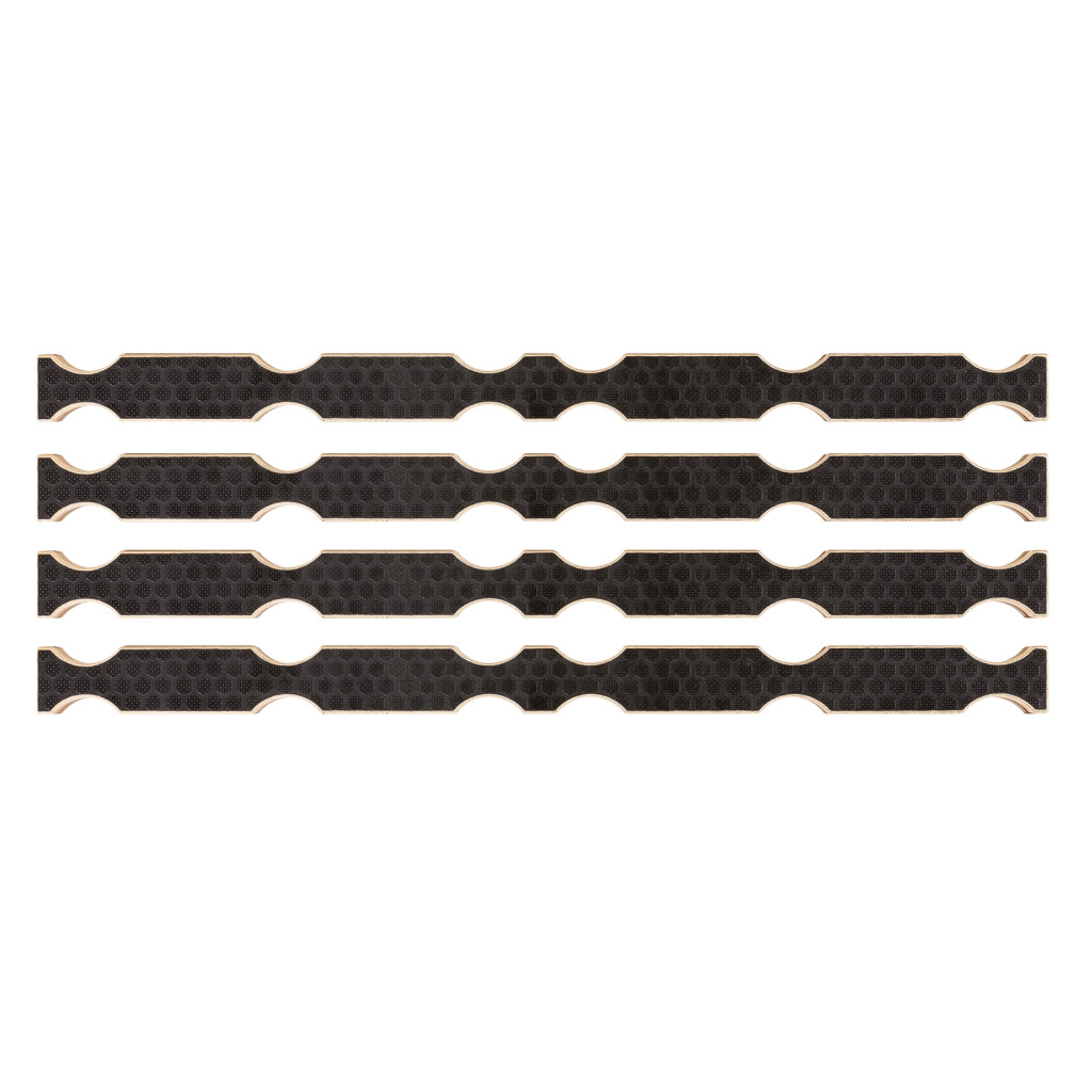 A rácsos középső kötegek 30 mm-es erős rétegelt lemezből készülnek, és oldalanként 6 kivágással vannak ellátva. (Mindkét oldalon két rácsos rácsra alkalmas) A 2, 3 és 4 pontos rácsos rácsok egyszerű tárolására és egymásra rakására.